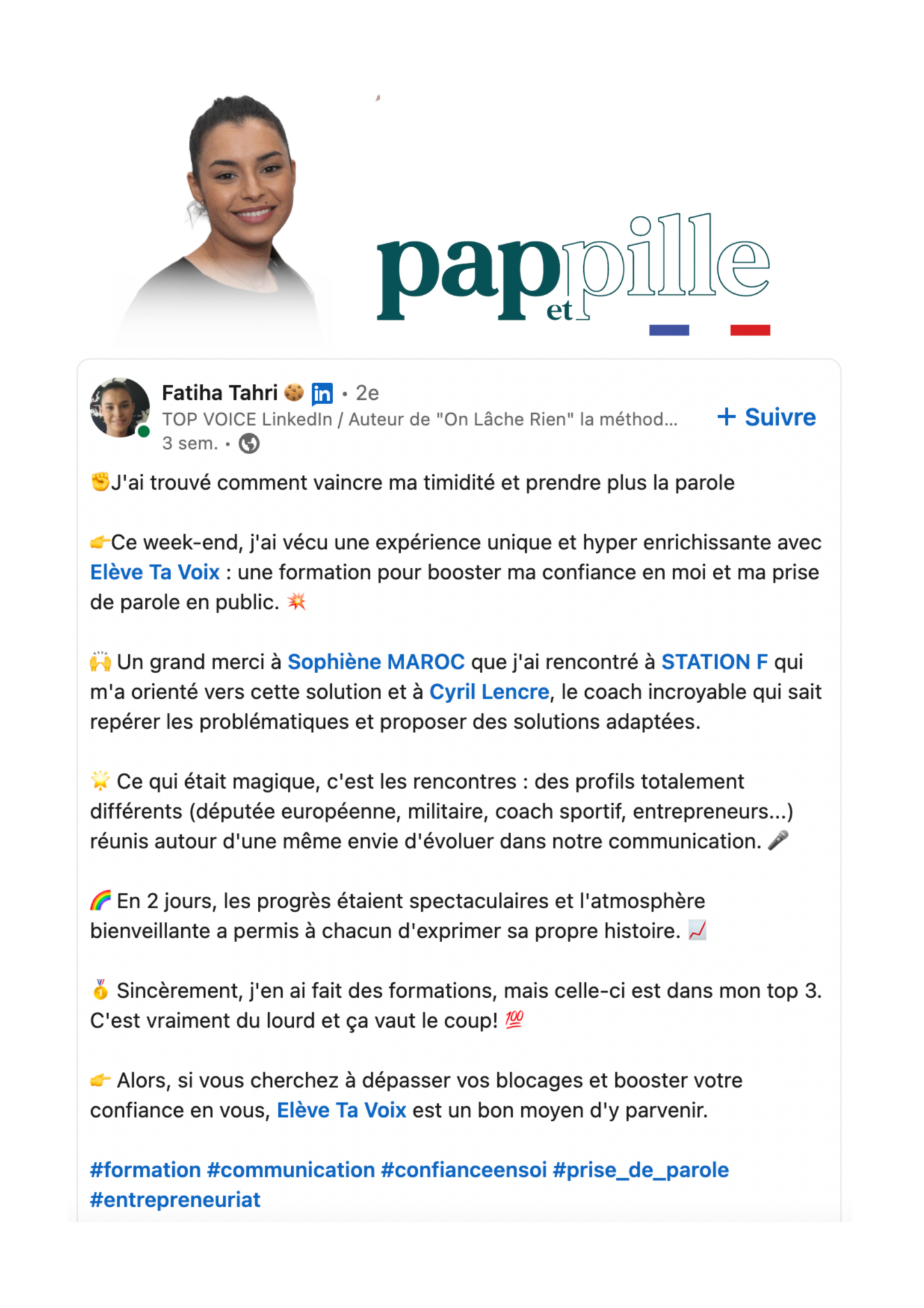 "Ce n'est pas du blabla théorique, mais vraiment de la mise en pratique dans l'écoute et la bienveillance."